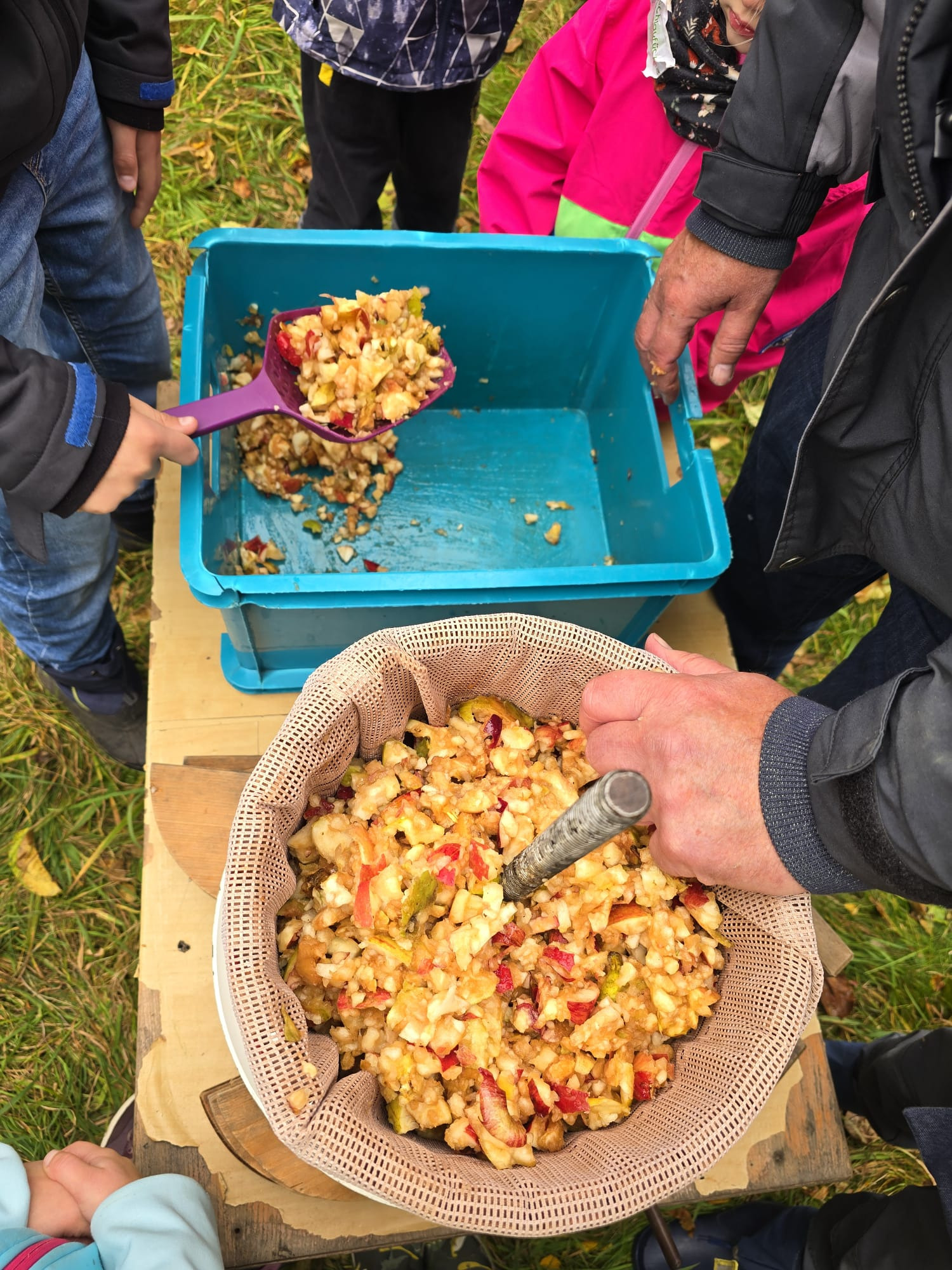 Am 12. Oktober 2025 trafen sich die Schlaufüchse an der Alten Obstwiese in der Kieler Straße in Neumünster. Dort bekamen wir eine Führung, bei der wir viel über die Apfelsorten und die Obstwiese erfuhren. Wir sammelten auf unserer Tour über die Wiese viele verschiedene Apfelsorten, die direkt an Ort und Stelle probiert werden konnten. Zum Abschluss der Führung konnten wir Apfelsaft pressen, der ebenfalls direkt verkostet werden konnte. Wir bedankten uns für die tolle Führung und die vielen Apfel-Naschproben.